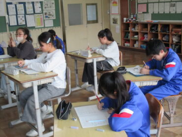 4年生は、書写の時間に書初の練習をしていました。4年生は「美しい空」と書きます。文字のバランスを考えながら、筆を立てることを意識して練習していました。