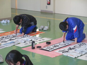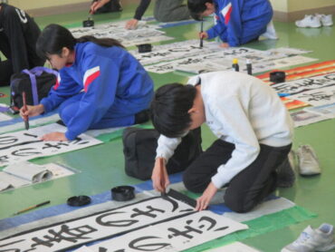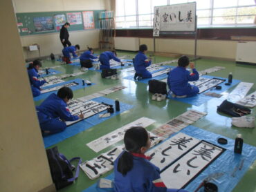 6年生は、書写の時間に書初の練習をしました。6年生は「新春の志」と書きます。とめやはらい、長さ、押さえ方、筆運びなど、意識すべきところはたくさんあります。学年が上がるにしたがって画数も多くなり、難しくなります。