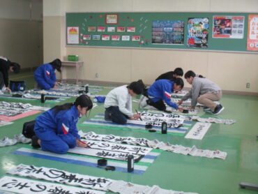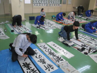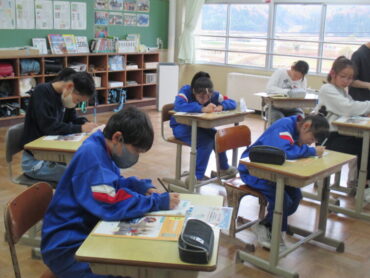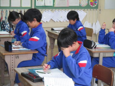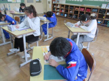6年生は、書写の時間でした。書初練習をしていました。一文字一文字丁寧に書き進めていました。
