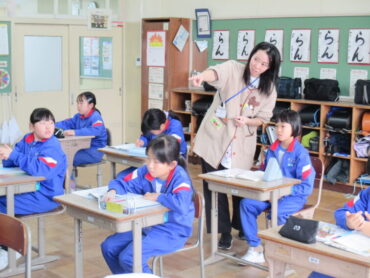 4年生も算数の時間でした。分数の学習で、仮分数と帯分の大きさを比べるために、どうすればよいかを考えていました。