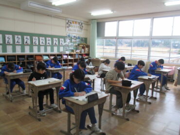 4年生は、国語「もしものときにそなえよう」の学習でした。前時までに下書きした文章を見直しながら、清書していました。子供たちは、集中し、丁寧な文字で書いていました。