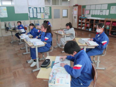 4年生は、国語「もしものときにそなえよう」の学習でした。前時までに下書きした文章を見直しながら、清書していました。子供たちは、集中し、丁寧な文字で書いていました。