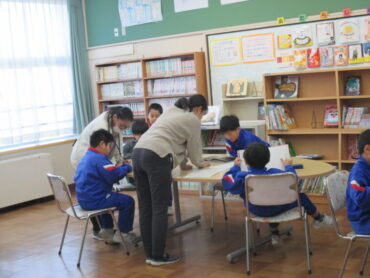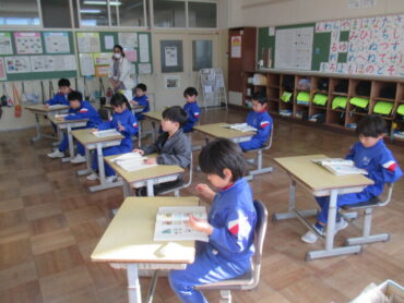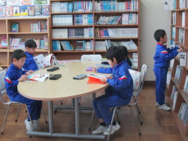 1年生は、国語の時間でした。教科書に、いろいろなお話が紹介されていたので、図書室で本を探したり、本を読んだりしていました。