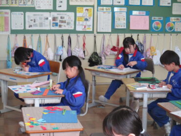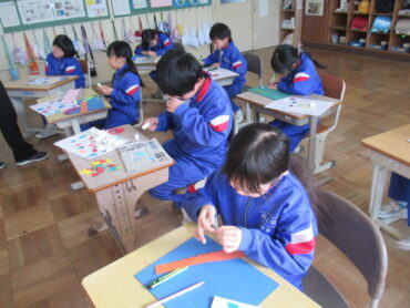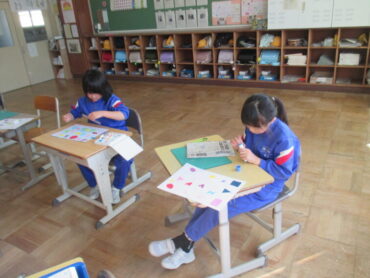 2年生は、図画工作の時間でした。作品を作りながら、カッターの使い方に慣れていきました。