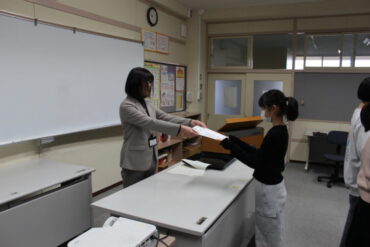 終業式では、学校長から、2学期を振り返って、3学期もみんなで力を合わせて頑張ろうということや冬休みには家族の一員として自分にできる仕事を一つでも多く見付けて家族の役に立ってほしいこと等の話がありました。