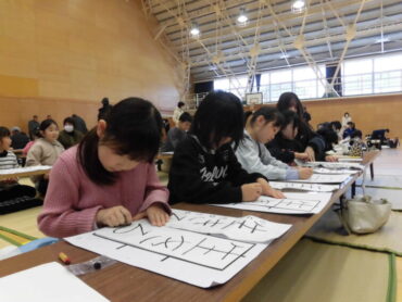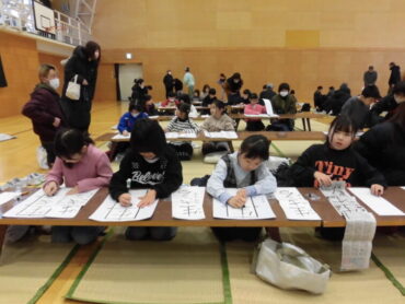 1月3日(土)、伏木小学校で、第67回伏木地区児童クラブ書初大会が開催されました。