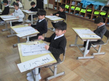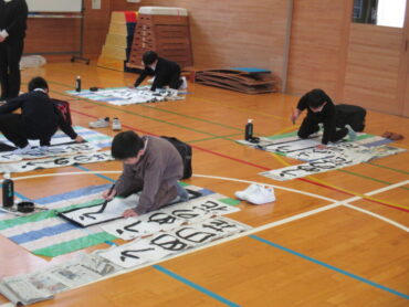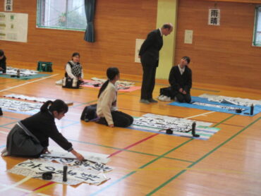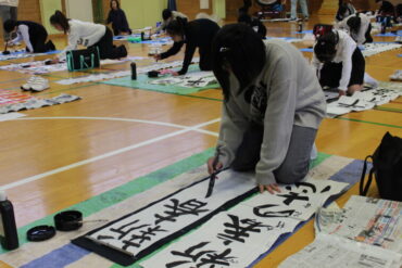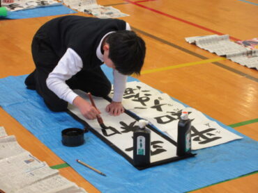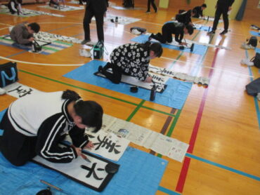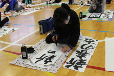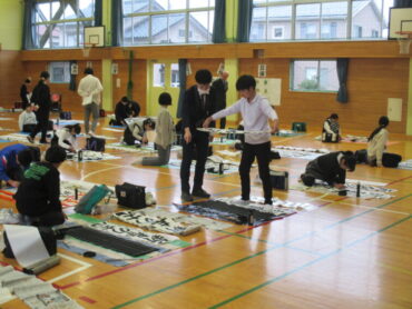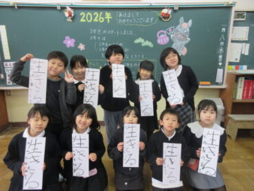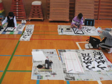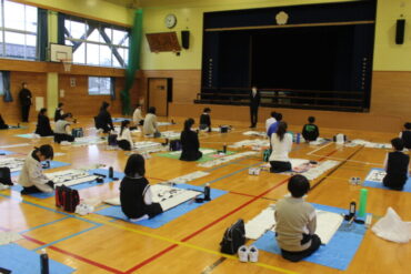 2026.1.8 全校生 書初大会 1月8日(木)、書初大会を行いました。1、2年生は教室で、3~6年生は体育館で書きました。 冬休みに練習してきた成果を発揮して、一文字一文字を丁寧に書き、集中して大会に臨む姿から子供たちのやる気を感じました。