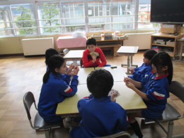 1月13日(火)、太田っ子ロングタイムの時間に、新しい縦割り清掃班で清掃場所や役割を確認しました。その後、縦割り班で一緒に遊びました。ドッチビーやだるまさんが転んだ、トランプ、魔法のじゅうたん、フルーツバスケット等を楽しみました。明日から縦割り清掃が始まります。新しい清掃班のみんなで仲よく、協力して掃除してほしいと思います。