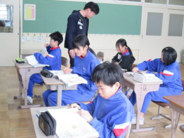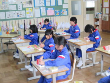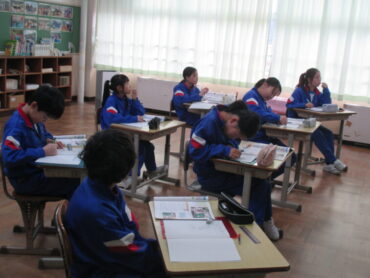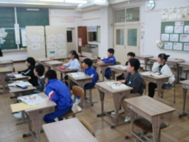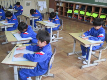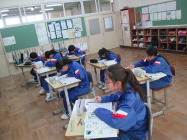 6年生は、算数の時間でした。3学期は、これまで学習してきたことの復習をします。中学校進学に向けて、既習内容をしっかりまとめておきたいものですね。