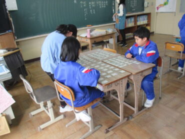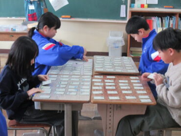 4年生は、越中万葉かるたに親しんでいました。かるたの並べ方や競技の仕方、かるたの覚え方等を教わっていました。かるた遊びやかるた競技を通して、万葉集の名歌に親しみ、高岡や富山のよさを感じてほしいと思います。