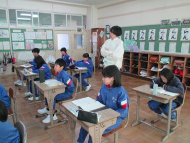 6年生は、外国語「My dream」の時間でした。リスニングを通して、登場人物3人の将来の夢について聞き、それぞれの職業の言い方に慣れ親しんでいました。子供たちは、どんな夢を抱いているのでしょうか。