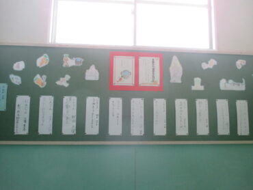 午後には、作品となって、掲示板に貼られていました。