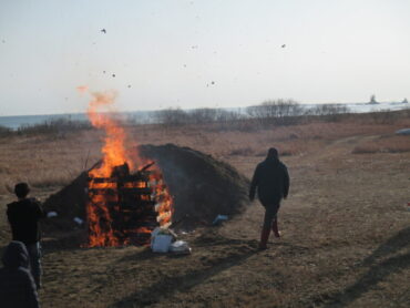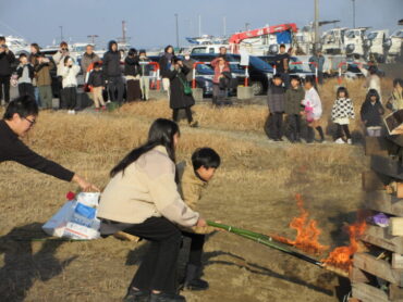 それぞれが持ち寄った書初めや正月飾りの灰が天高く舞い上がりました。