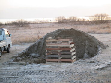 前日から、PTAの方々に浜に穴を掘っていただき、当日は朝早くからやぐらを組んだり、テントを建てたり、受付場所をつくったりするなど、いろいろな準備をしていただきました。