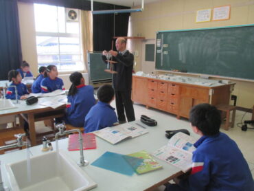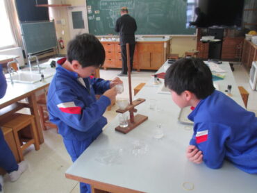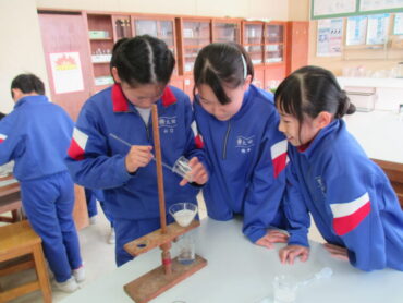 5年生は、理科の時間でした。食塩やミョウバンを水に溶かす実験で、溶けなかった粒をろ過して取り出していました。