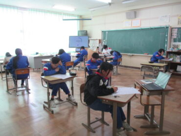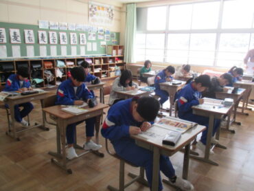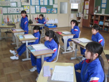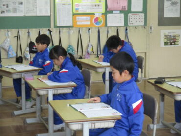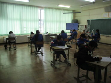 6年生は、算数の時間、静かにテストをしていました。テストを通して、どこが理解できていて、理解できていないのはどんな問題なのかを振り返って、学習したことをまとめをしてほしいものです。