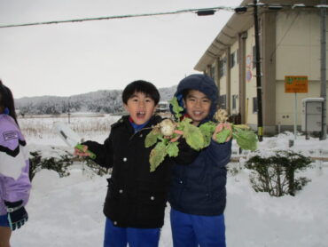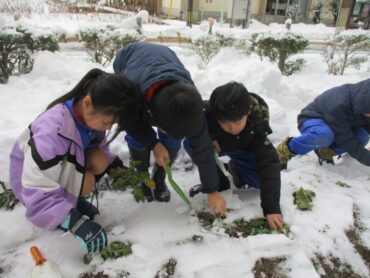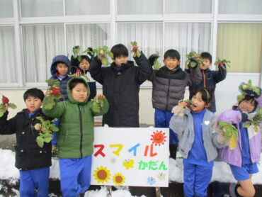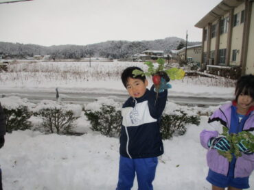 1月26日(月)、3年生は、11月頃に理科の学習で植えた二十日大根を収穫しました。成長の様子を観察してきました。今日は、雪の中での収穫になりましたが、子供たちはたくさん収穫できて、大満足でした。