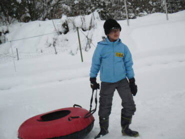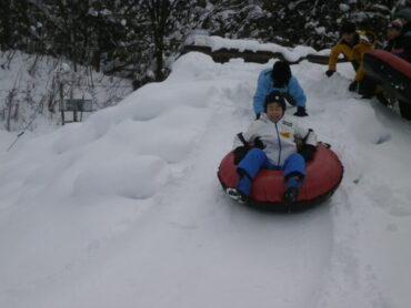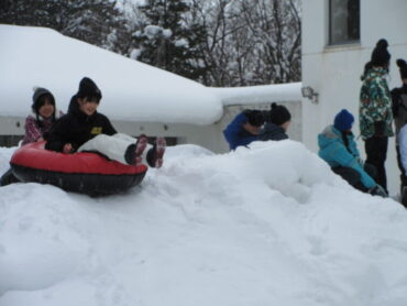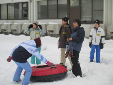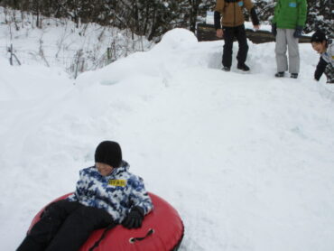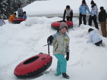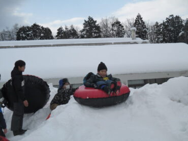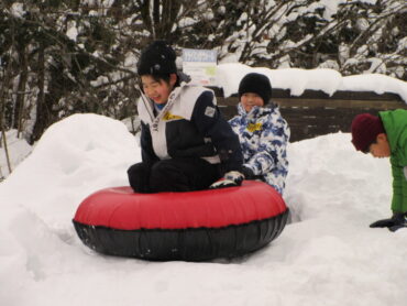 少し雨が降っていましたが、野外でスノーチューブ、雪遊び、かんじき体験をすることができました。