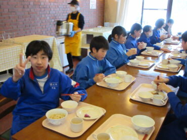 1月27日(火)、6年生は、伏木小学校と古府小学校、太田小学校の3校合同で砺波青少年自然の家に校外学習に出かけました。目当ては、次の二つです。