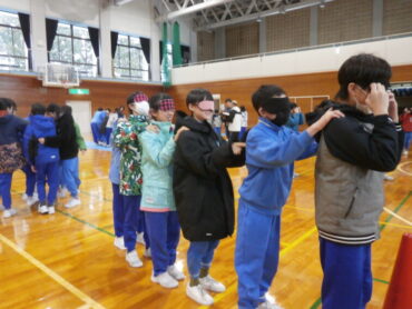 ②伏木中学校区3小学校の6年生が交流し、集団行動を通して人を思いやり、助け合う気持ちを高めること