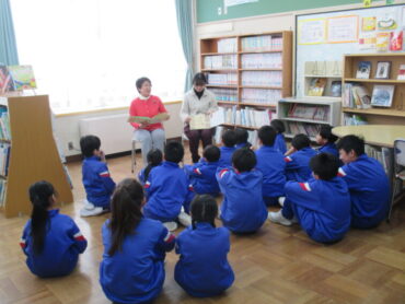 2026.1.30 NEW 全校生 お話会 1月30日(金)、8回目のお話会を行いました。テーマは「おに」でした。 「だいくとおにろく」「やさいのおにたいじ」「島ひきおに」「落語絵本 おにのめん」を読んでいただきました。 【だいくとおにろく】 【やさいのおにたいじ】 【島ひきおに】 【落語絵本 おにのめん】