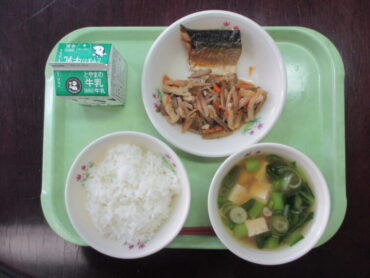 ごはん、牛乳、鯖の塩焼き、ごぼうの炒め煮、みそけんちん汁