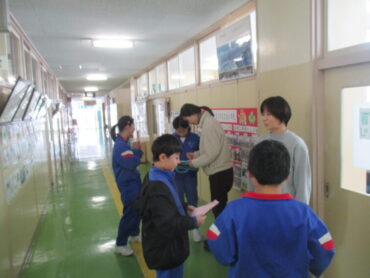 毎朝、運営委員の子供が挨拶ビンゴの達成状況を放送しています。