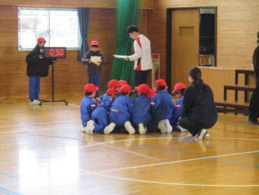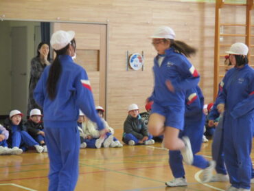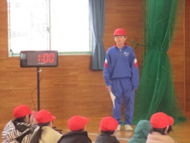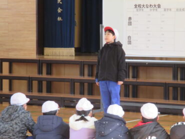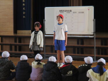 2月17日(火)に行われる大なわ大会の予行練習を行いました。運営委員会が司会をし、進行や係の仕事、動き等を確かめました。低、中、高学年で、それぞれ赤白団に分かれて跳びました。17日の本番に向けて、さらに跳べる回数を伸ばせるように頑張ってほしいと思います。