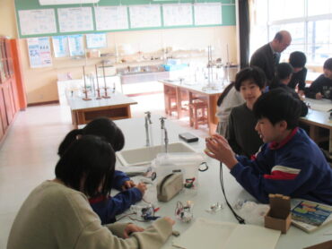 6年生は、理科の時間でした。発電し、蓄電した電気を利用して、豆電球や発光ダイオード、モーターを動かしていました。これらを動かすための電気の消費量には違いがあるのかを実験していました。