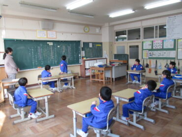1年生は、学級活動の時間でした。「卒業を祝う会」の集会名について話し合っていました。5年生が考えた3つの案から、どの案がよいか、それぞれ理由を話しながら考えていました。