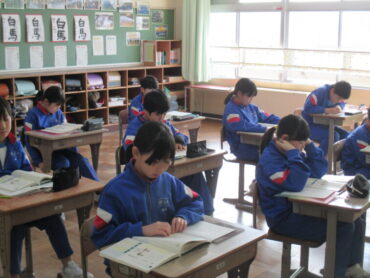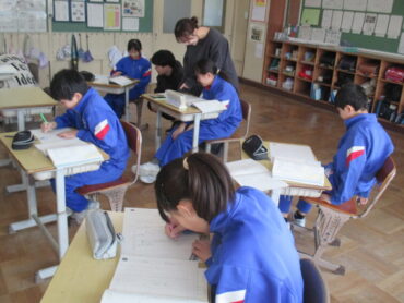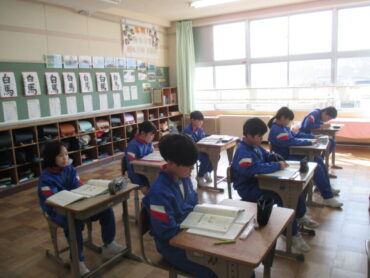 2年生は、音楽の時間でした。卒業を祝う会や卒業式で歌う歌を練習していました。