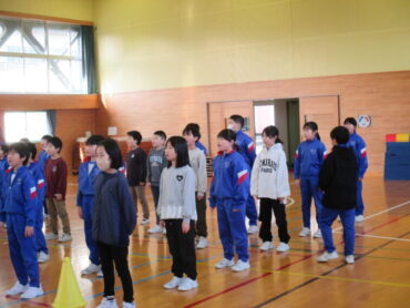 2026.2.24 1年生 2年生 3年生 4年生 5年生 卒業を祝う会に向けて2 2月24日(火)の朝の時間、5年生の子供たちが中心になり、1〜5年生で卒業を祝う会の歌や6年生が退場する際の動きを練習しました。体育館に集まり、司会の言葉かけでどのように動くのか、歌うのかを試していました。歌の練習では、5年生が1〜4年生の間を動きながら声をかける姿や、それに応えて声をしっかり出そうとする子供たちの姿が見られ、6年生に思いを伝えようとする様子が伝わってきました。 27日(金)に向けて、各学年でできることをして、6年生に感謝の気持を伝えられるとよいですね。