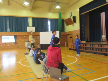 縦割り清掃班に分かれ、6年生が太田小学校で過ごしてきた日々を題材にしたクイズに挑戦しました。問題の答えが◯か☓、1か2を選んで12問のクイズに笑顔で取り組んでいました。残念ながら、全問正解した班はありませんでしたが、温かい交流の時間になりました。