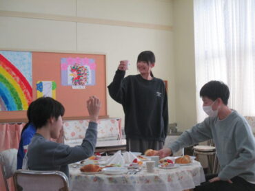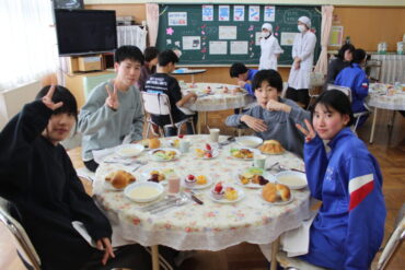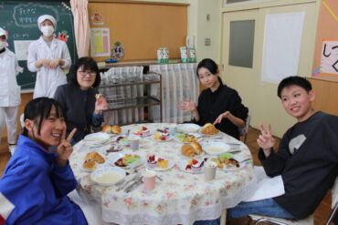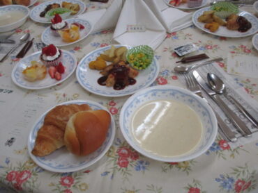 コース料理を思わせるメニューで、フォークやナイフを使いながら、マナーも学べる素敵な時間となりました。いつもと違う雰囲気の中で、みんな笑顔でおいしく、楽しく会食することができました。