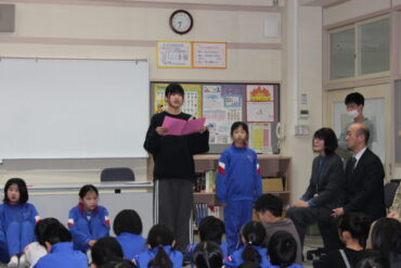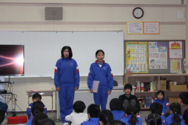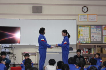 その後、委員会引き継ぎ式を行いました。運営委員会、こころ委員会、からだ委員会の委員長から、5年生の子供たちにファイルを引き継ぎました。それぞれの委員長は、後期の活動でのよかった点や改善点等を話し、5年生の子供は、来年度引き継ぎたいことを話しました。