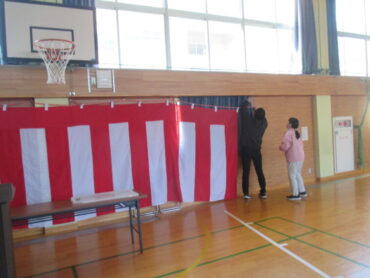 3月9日(月)、朝の時間に、先生方が体育館に紅白幕を設置してくれました。明日は、予行練習があります。6年生の子供たちは、月曜日から少し緊張しながらも練習に取り組んでいました。