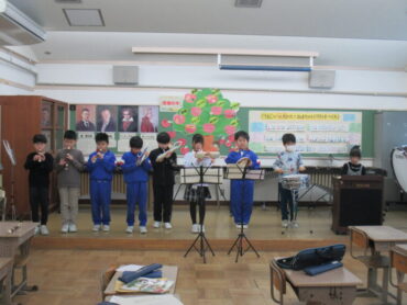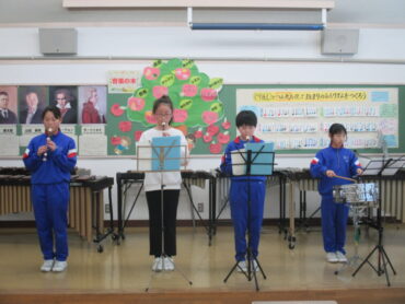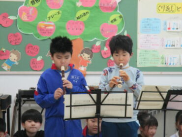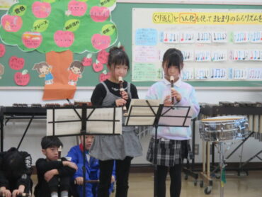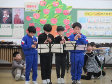 最後に、卒業を祝う会で演奏した「ミッキーマウスマーチ」を披露してくれました。4年生になると、音楽交流会に参加することになります。これからも、楽しみながら、音楽の学習を進めてほしいと思います。