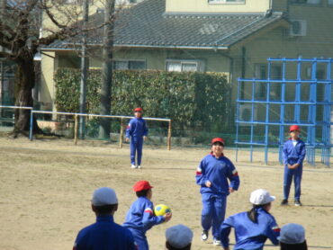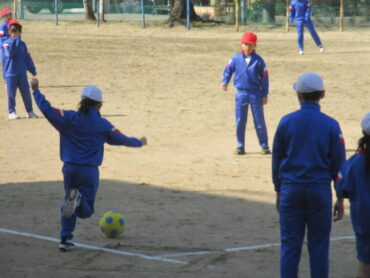 3、4年生は、体育の時間にキックベースの学習をしました。前回の授業でルールを覚えた子供たちは、今日は実際にゲームに挑戦しました。蹴る順番を工夫したり、キャッチしたボールをどこへ投げるとよいか考えたりしながら、声をかけ合って楽しく活動する姿が見られました。