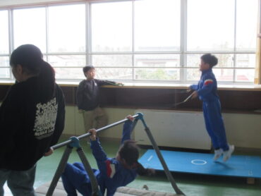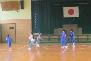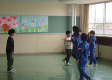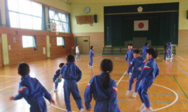 休み時間、子供たちは、体育館でドッジボールを多目的スペースでは縄跳びや鉄棒等をして、仲よく遊んでいました。